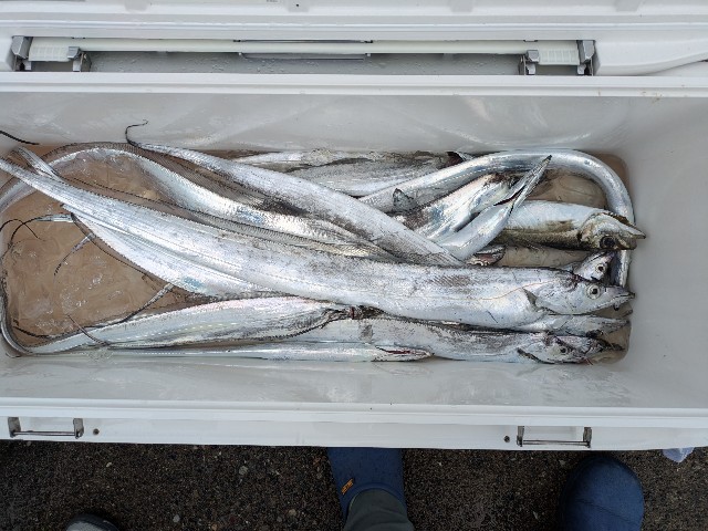 タチウオ1人1匹〜16匹指3〜5本他に、カサゴ、サバ、アジ、エソが釣れました。