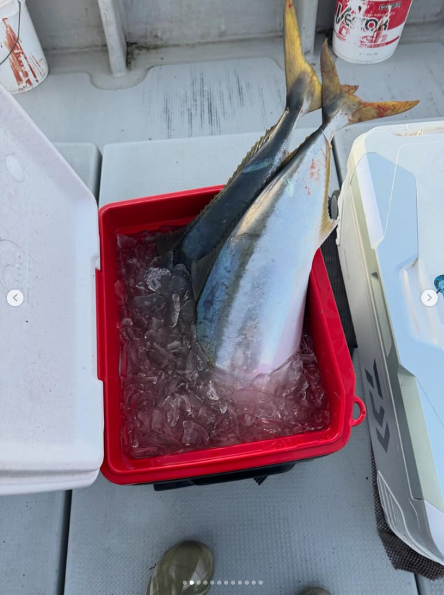 昨日今日とまぁまぁの爆でした👍 写真は全て撮りきれなかったですが2日分です。 新しい群れなのか食い出すとまぁ連発で忙しい忙しい🤣 ラインブレイクにバラしが多すぎた… 明日からシケで今日が年内ラストでした。。 来年1月、2月とまだまだ空きがあります! 巨鰤もまだまだ狙えるので挑戦者お待ちしてます🔥 今年も皆様のおかげで事故も無く無事1年終える事が出来ました🙇♂️ 乗船して頂いたお客様、協力してくれた方々、ありがとうございました🙏 また来年も宜しくお願いします🙇♂️ 良いお年をお迎えください。