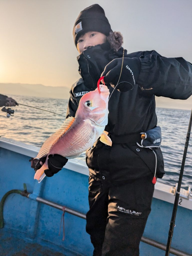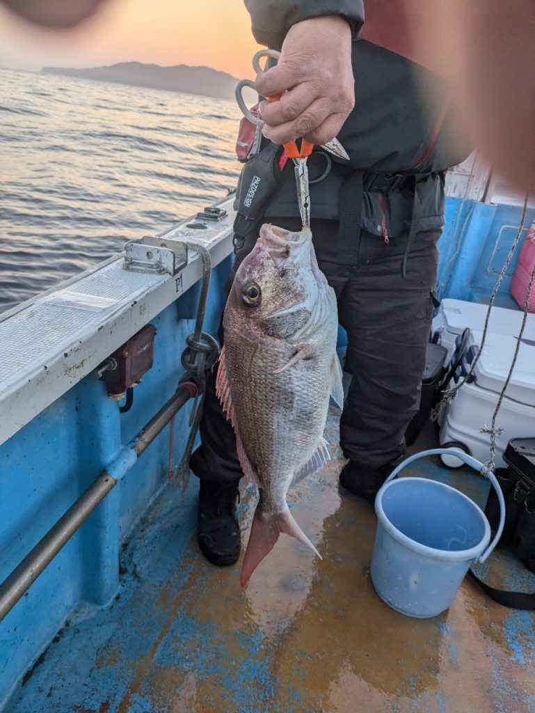 タイラバ、ジギング真鯛1人1枚〜3枚1.5キロ〜2.5キロ鰤は釣れませんでした。風が強くなり3時間で早上がりでした。