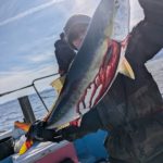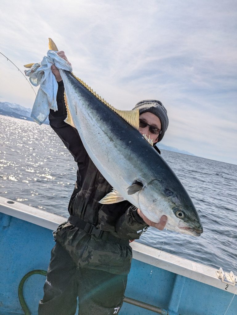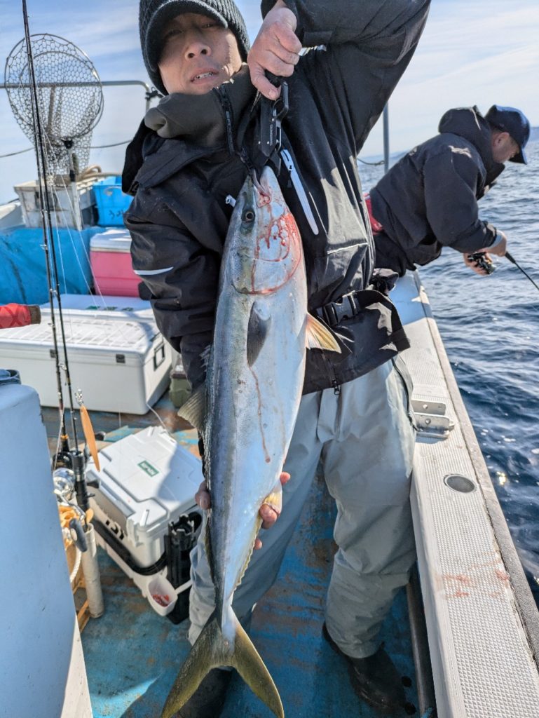 タイラバ真鯛1人0枚〜1枚,1,5キロ.ジギング、鰤最大12キロ他にワラサ、マフグが釣れました。