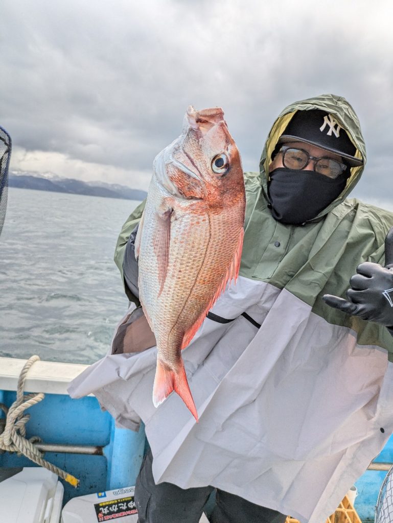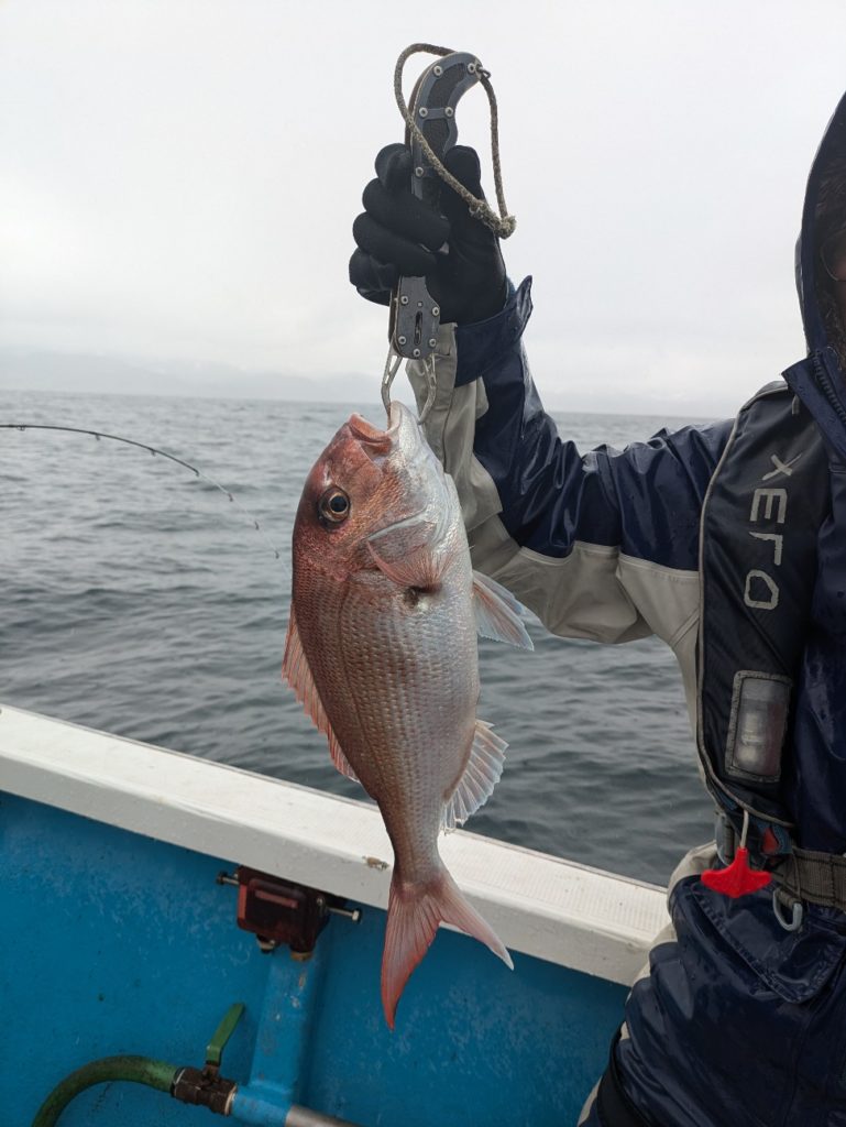 タイラバ、ジギング真鯛1人0枚〜3枚.1キロ〜2キロ他にマフグが釣れました。