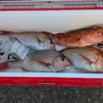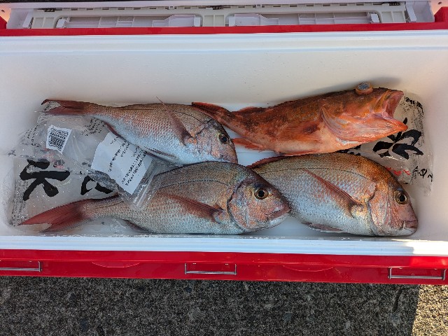 タイラバ、ジギング真鯛1人1匹〜3匹、1キロ〜2.5キロ他に、ウッカリカサゴ、サバ、イナワラ、メジが釣れました。