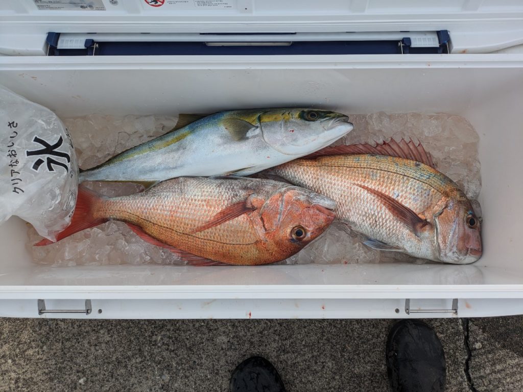 真鯛1人0枚〜3枚1.5キロ〜2キロ鰤は釣れません。他にウッカリカサゴ、クロソイ、エソ、イナワラが釣れました。