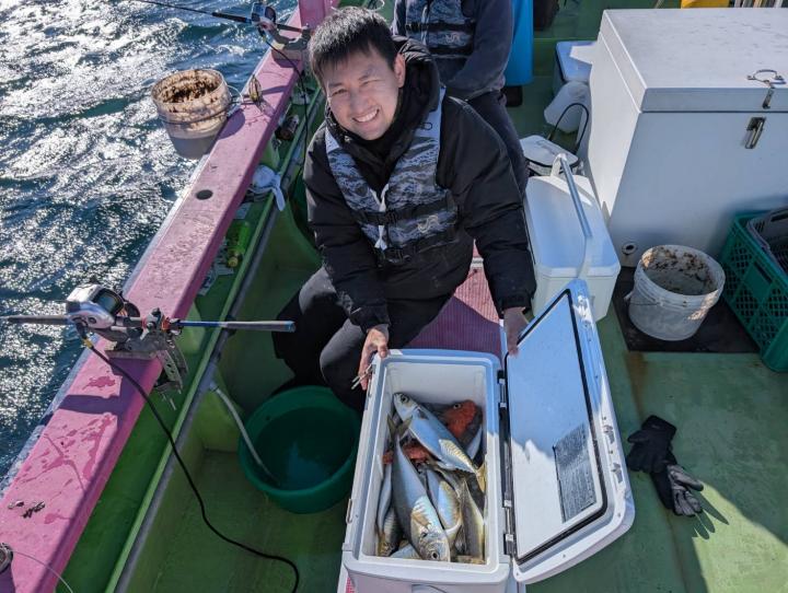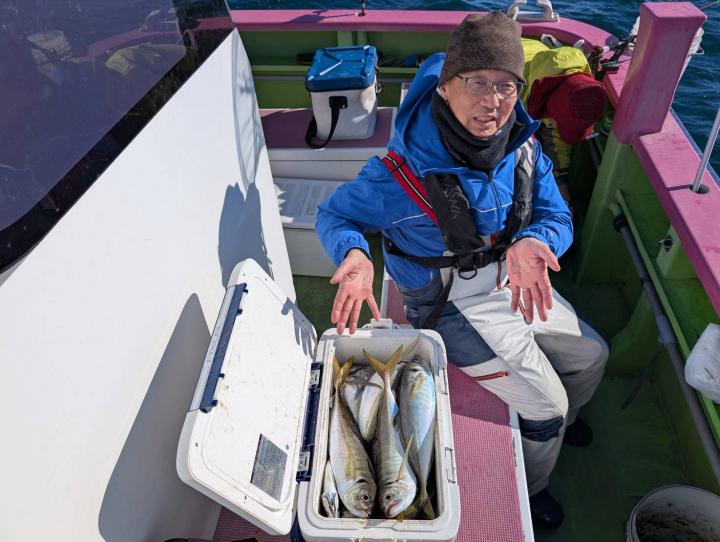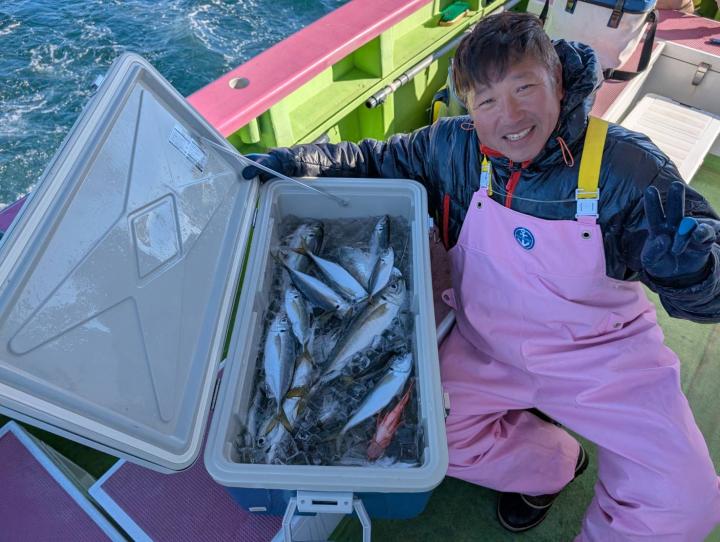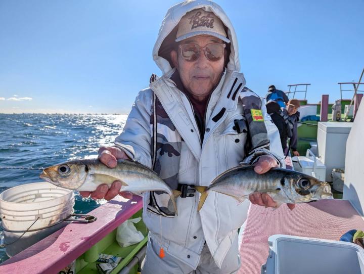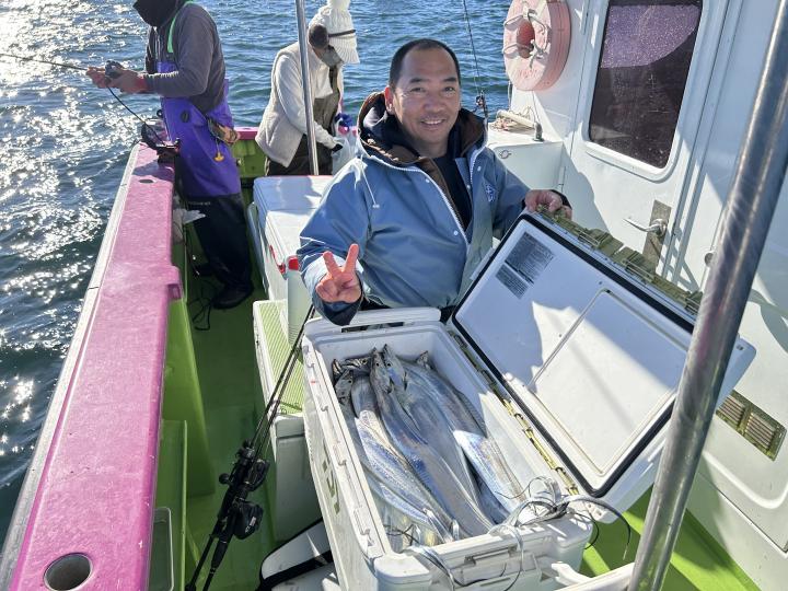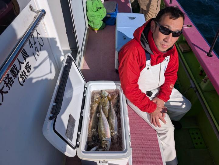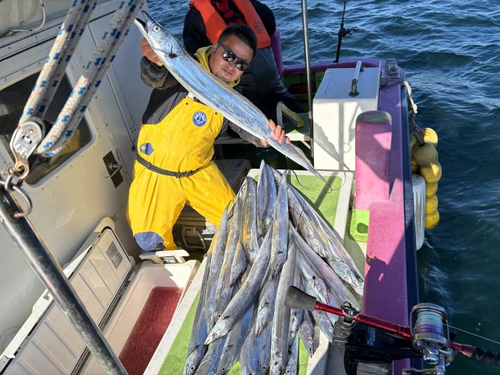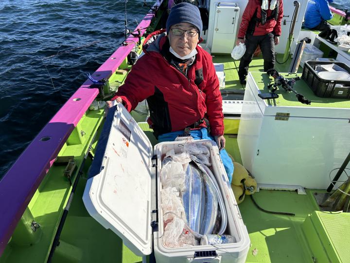 【遠征五目船】 本日は、出船できました。 朝一、幻のシロアマ探索からスタート! 開始一投目よりイトヨリゲットでき 本命シロアマも2匹ゲットしてから 赤アマも釣れて、五目に切り替え 深場ポイントでは、アジ主体で少し浅いポイントでは イナダ食い良く、マダイ混じりで釣れ ラストにマダイ狙いましたが 残念ながら不発に終わってしまいました。 たかし船長 【ショートタチウオ船】 今日もタチウオ釣りへ!! 今日も反応はバッチリで 釣れたりー 間が空いたりー 連チャンしたりー と繰り返しながら楽しめました。 竿頭テンヤが28匹 二番手天秤が27匹 三番手、天秤が23匹 今日もお土産バッチリでした。 皆様頑張って頂きありがとうございました。 祐希船長 【ショートタチウオ船】 今日はタチウオ船は、二隻での出撃でした! 朝一は、走水沖で 途中からは観音崎沖で 反応は終日見れまして アタリは頻繁に有りまして 皆さんクーラー賑わいました! 竿頭27本でテンヤ・二番手21本が3名様でテンヤ2人と天秤 三番手20本で天秤でした。 明日のタチウオ船の予約は締め切りとなりました。 貴光船長 【ショートアジ船】 今日も大勢のお客様に遊びに来て頂きました。 ありがとう御座いました。 前半はころっとした中アジ主体で ポツン〜ポツンと皆さん見れて楽しめ 後半は、デカアジフィーバーで最大45センチ! 天気も良く、喰いも良く、最高の一日でしたね! 竿頭50匹、2番手47匹、3番手45匹の結果で フルレンタルのお客様も 12〜40匹と皆さんクーラー重くなりました! また皆さんで遊びに来て下さい。 ※数を釣りたい方は、お店で青イソメを購入して下さい。 ※餌代高騰の為、追加のコマセは1ブロック300円になります。 ※船内に魚をすくう玉網は有りますが 数に限りが有りますので ご心配の方は、ご自分でご用意して乗船して下さい。 明日もお付き合い宜しくお願いします。 勝司船長