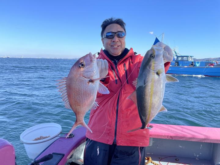 イナダ食い良く、マダイ混じりで釣れ