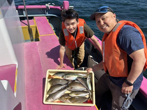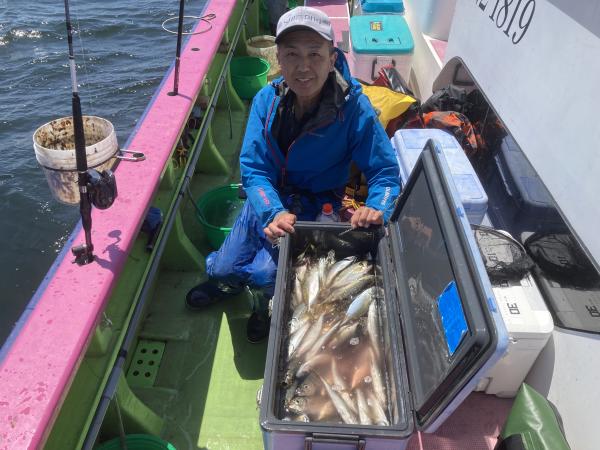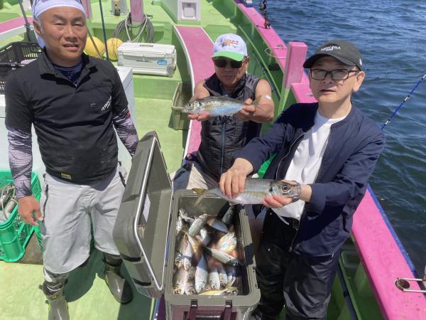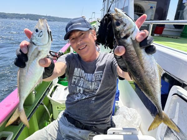 【遠征五目船】 本日も、出船できました。 近場ポイントからスタートし イサキ・アジ主体に食い良く ダブル・トリプルもあり イサキも型よく、最大45センチも浮上し 早めにクーラーいっぱいの方も! 中盤から深場ポイント探索し 沖メバル・アカイサキ・カンコなど見れ 残念ながら大物は不発でしたが お土産バッチリゲットできました。 場所によっては 細ハリスの仕掛け優勢な場所もありますので ご準備もお願いします! たかし船長 【ショートアジ船】 本日は2隻で出船出来ました。 ありがとう御座いました。 観音崎沖でやり 中アジ主体でダブル〜トリプルと喰い良く 皆さんクーラー重くなりました。 竿頭100匹、2番手87匹、3番手84匹の結果で 平均40匹前後と好調でした。 明日もお付き合い、ご予約お待ちしてます。 勝司船長 【ショートアジ船2隻目】 今日はアジの2隻目で!! 開始から入れ食いで、 帰りまで食い止まらず 最大43センチとデカアジもゲット! 今日もバッチリ! ヒラメにトラフグも登場して 盛り上がりました。 竿頭116匹 二番手79匹三番手78匹 頑張って頂きありがとうございました。 祐希船長 【ショートタチウオ船】 今日は第二海保の浅場に 反応は沢山有りましたが タチウオの活性は悪くて アタリを出すのは難しい展開でした。 釣り人6名様で5本・5本・5本・4本・1本・0でした。 土曜日のタチウオ船は 配船の都合によりお休みします。 日曜日は出船します。 貴光船長