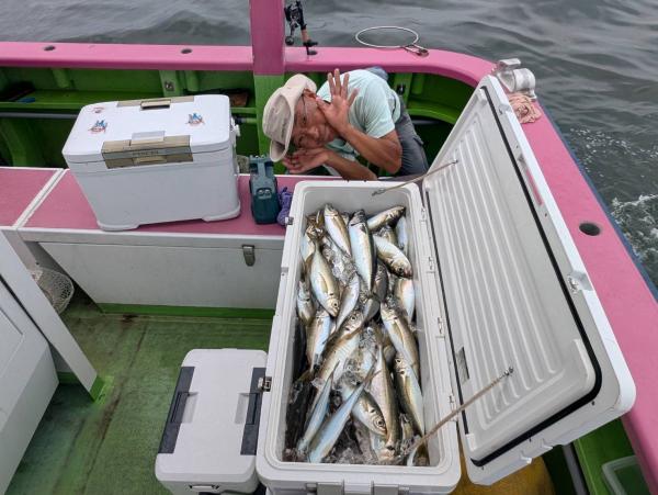【ショートタチウオ船】 本日もタチウオ船には 大勢のお客様に遊びに来て頂き感謝です! 三隻に別れての出撃でした! 今日は朝一は走水沖で 後半戦は大津沖に反応有りまして 終日ポチポチ釣れました! テンヤも天秤も同等にアタリは有りました! 竿頭30本・二番手21本・三番手16本が2名様でした。 明日のタチウオ船も 三隻体制でお待ちしています! 貴光船長 【ショートタチウオ2隻目】 本日は、タチウオ3隻にて出船できました。 伊勢町・大津沖にて朝から反応よく 開始一投目よりアタリ良く 天秤・テンヤ共に型が見れ バラシも目立ちましたが 反応途切れず楽しめました。 最大118センチに トップ天秤で33本・二番手26本・三番手25本で テンヤのトップは18本でした。 毎日暑いので暑さ対策・ 飲み物は、多めにお持ち下さい。 たかし船長 【ショートタチウオ3隻目】 今日もタチウオ釣りへ!! 当たりは多かったですが、 前半は小さいのがほとんどで 後半から型良いの混じりで 見れました! 竿頭天秤釣りで、26匹が二名様 二番手テンヤ13匹 三番手もテンヤが12匹の結果でした。 頑張って頂きありがとうございました。 祐希船長 【ショートアジ船】 大津沖でやり 美味しそうな中アジ主体! デカアジも混じり ダブル〜トリプルと喰い良く 皆さんお土産以上の結果で 竿頭117匹、2番手69匹、3番手60匹の結果で フルレンタルのお客様も30〜50匹と 暑い中皆さん最後まで頑張って頂きました。 ありがとう御座いました。 また皆さんで遊びに来て下さい。 勝司船長