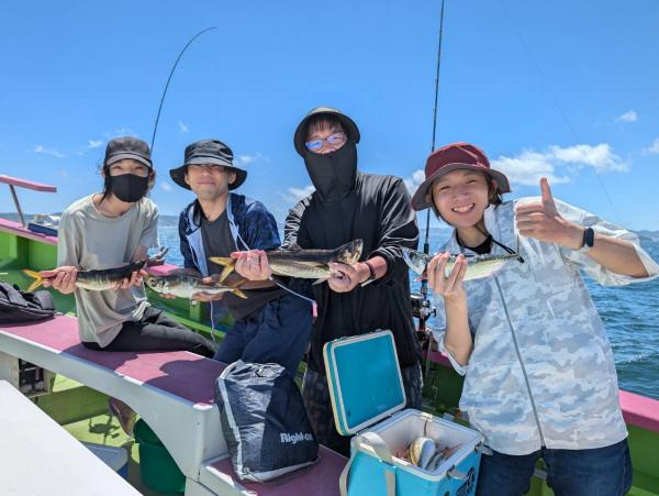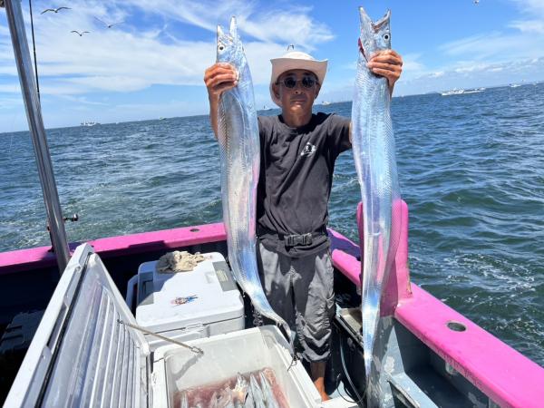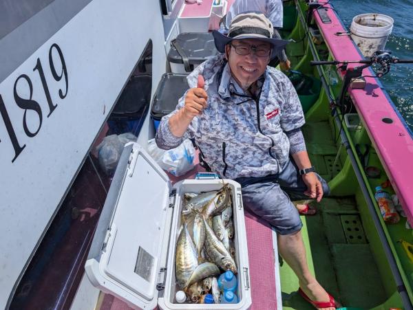 【ショートタチウオ船】 本日もタチウオ船には 大勢のお客様に遊びに来て頂き感謝です! 三隻に別れての出撃でした! 今日も終日大津沖には広範囲に反応は有りまして テンヤも天秤も食い活発でした! ドラゴンサイズも混じりましたが 平均型は小型が目立ちました。 竿頭28本で天秤,二番手26本が2名様でテンヤ 三番手25本で天秤で皆さんクーラー賑わいました! 明日のタチウオ船の予約は締め切りとなりました。 貴光船長 【ショートタチウオ2隻目】 本日は、タチウオ3隻にて出船できました。 大津沖からスタートし一投目より 良型混じりでアタリ良くバラシも 目立ちましたが連チャンで釣れる方も! 中盤からサイズダウンしましたが 反応に困らずアタリも途切れず時間まで楽しめました。 最大134センチに129センチもゲットでき トップテンヤで37本・二番手天秤で27本 三番手天秤で26本でした。 毎日暑いので暑さ対策 飲み物は必ず多めに持ってきてください! たかし船長 【ショートタチウオ船3隻目】 今日も乗り合い船に!! 近場で一日!! 今日も当たり活発!! ほとんどのお客様が20匹オーバーと 皆様お土産バッチリでした。 竿頭38匹 天秤! 二番手は二刀流で36匹! 三番手も二刀流で、35匹の結果でした。 126センチ、125センチなどなど 特大くらすも!! 頑張って頂きありがとうございました。 祐希船長 【ショートアジ船】 本日も大勢のお客様に遊びに来て頂きました。 ありがとう御座いました。 やや小ぶりも混じりながら 中アジ〜デカアジと 中盤から喰い良く ダブルトリプルと皆さん見れて楽しめました。 竿頭72匹、2番手60匹が2名様、3番手59匹の結果で フルレンタルのお客様も 16〜50匹と平均30匹以上と お土産十分キープ出来ましたね。 また皆さんで遊びに来て下さい。 明日もお付き合い宜しくお願いします。 勝司船長