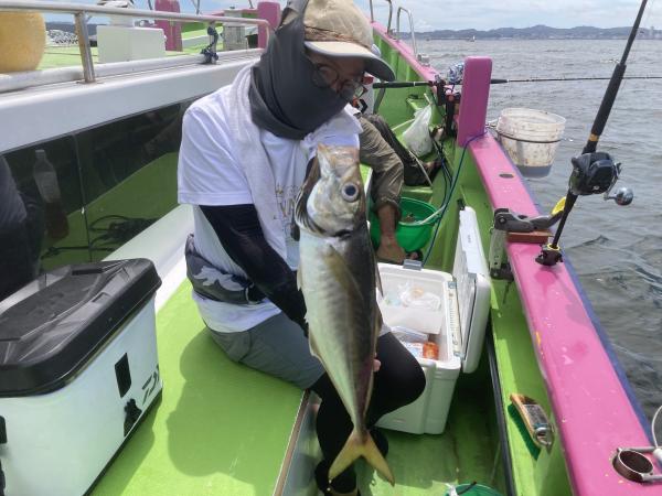 【ショートタチウオ船】 ジャンボ船三隻に別れての出撃でした! 朝一からタチウオの活性は良く サイズは小型〜ドラゴンまで入り乱れでした! テンヤも天秤もアタリ良く皆さんクーラー賑わいました! 竿頭30本・二番手26本・三番手25本・四番手24本が2名様でした! 最大は129センチと128センチが釣れました! タチウオ船は常時二隻〜三隻体制でお待ちしてます! 貴光船長 【ショートタチウオ2隻目】 本日もタチウオ3隻にて出船できました。 朝一、小型主体でしたが ポツポツと見れ 中盤からドラゴンサイズも混じり テンヤ初挑戦の方が多かったですが 皆様ゲットでき、お土産ゲットできました。 最大は、初挑戦の方が 見事135センチゲットでき トップ天秤で36本・二番手天秤で30本でした。 毎日暑いので暑さ対策 飲み物は必ず多めに持ってきてください。 たかし船長 【ショートタチウオ船三隻目】 今日もタチウオ釣りへ!! 天秤の選手多く!! サイズは小さいのばかりでしたが 当たりはすこぶる良く!! やる気次第で沢山釣れそうな雰囲気で 海外から初挑戦のお客様も 全員10匹-20前後釣れまして お土産バッチリ!! 皆さん平均的に 33匹、30匹、25匹が2名様 頑張って頂きありがとうございました。 祐希船長 【ショートアジ船】 大津沖でやり やや小ぶりも混じりながら ころっとした中アジ〜デカアジと 中盤から皆さんポツン~ポツンと見れて楽しめました。 最大48センチ! 竿頭52匹、2番38匹、3番手32匹の結果で フルレンタルのお客様も 8~28匹と潮の速い中最後まで頑張って頂きました。 ありがとう御座いました。 また皆さんで遊びに来て下さい。 明日もお付き合い宜しくお願いします。 勝司船長