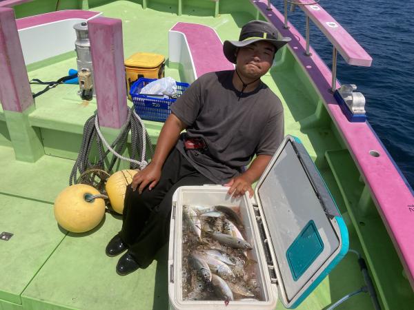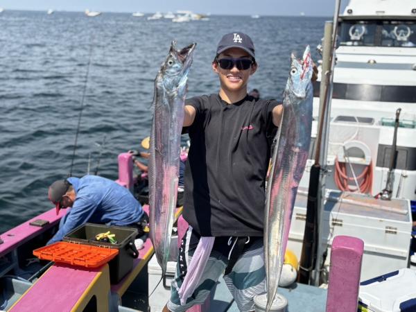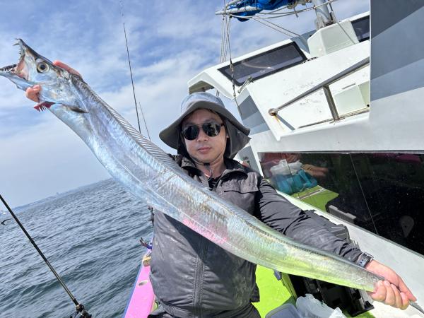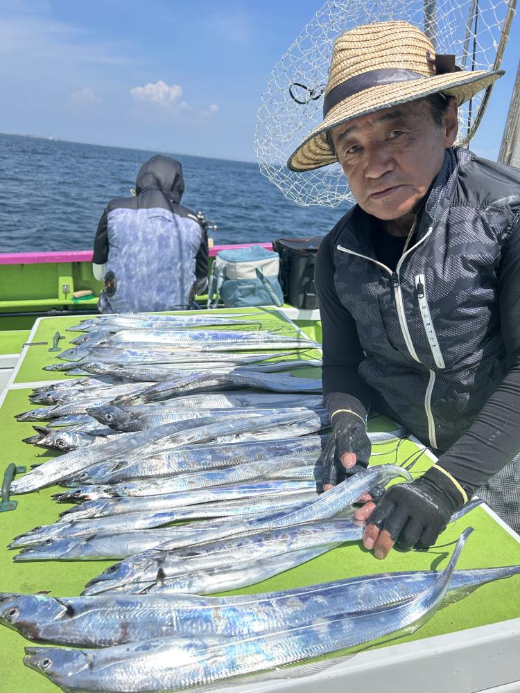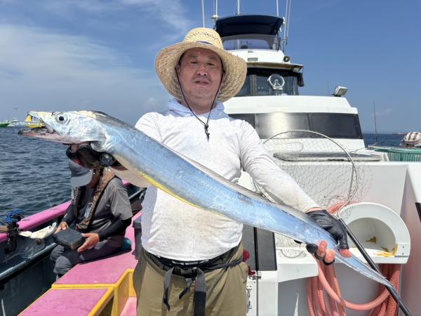 【ショートタチウオ船】 ジャンボ船二隻に別れての出撃でした! 朝一は走水沖から開始! こちらは小型主体で! その後は大津沖で 良型も混じりまして食い活発でした! 特に天秤はアタリ良くバリバリモード全開! 竿頭50本・二番手40本・三番手39本でした! 最大は128センチが2本 118センチ 115センチが釣れました! 明日からお盆最終日の17日まで タチウオ船は常時 ジャンボ船三隻体制でお待ちしています! 貴光船長 【ショートタチウオ二隻目】 本日もタチウオ2隻にて出船できました。 朝一、走水沖からスタートし 開始一投目より型が見れ 派手さはないですがポツポツと釣れ 中盤より大津沖で良型混じりで 時間まで楽しめました。 最大128センチに125・124センチも浮上し トップ天秤で38本・二番手天秤で35本 三番手天秤で30本でした。 テンヤは型良くボリューム感ありました! 毎日暑いので暑さ対策 飲み物は必ず多めに持ってきてください。 たかし船長 【ショートタチウオ仕立船】 今日はタチウオ貸し切り船に!! 大きいのばかりではなくて、 小さいのも居ましたが、 たまーにドカンと!! 最大135センチの尾切れ!! とかなりデカいやつでしたが、 尾っぽが惜しかったです。 他に127センチなども!! なるべく大きめー狙いで 数はあんまりでしたが 楽しめました。 頑張って頂きありがとうございました。 祐希船長 【ショートアジ船】 大津沖でやり ころっとした中アジ〜デカアジ混じりで ポツポツ皆さん見れて楽しめました。 竿頭51匹、2番手50匹、3番手40匹の結果で フルレンタルのお客様も 8〜15匹と型が良かったのでお土産にはなりました。 また皆さんで遊びに来て下さい。 明日もお付き合い、ご予約お待ちしてます。 勝司船長