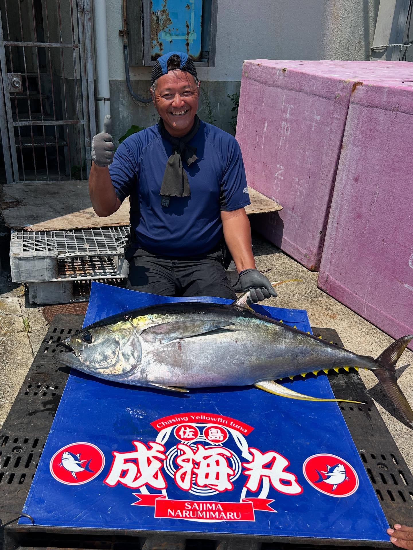 はい、今日もキハダキャスティングでした!朝一はナブラ浮かず😓風が入れてくるのを気にしつつしばらく西へ🚢するとナブラが見えてしばらくかまってましたが食わず😓別のナブラを発見!良い感じで、直ぐヒット!😆身体が大きなお客様だったので魚🐟が小さく見えますが45kでした😆まだまだデカイの居ます!6〜8号タックルでお願いします 8月7日乗合募集中残り1名様 8月8日チャーターor乗合どちらでも!(チャーター優先) 宜しくお願いします🙇