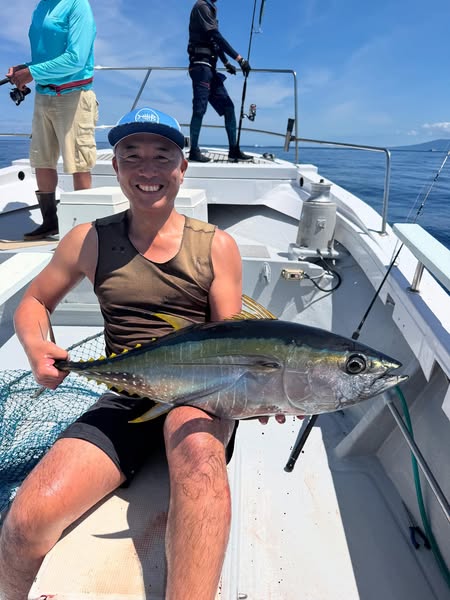 1号船キャスティング乗り合いでした。 10キロのキメジ、カツオでした🐟 平日空き🈳あります❗️ ライブベイトも出船します❗️ 8月〜コマセマグロのご予約もお待ちしてます😊 乗り合いもぜひご相談ください❗️ 2号船はティップラン乗り合い🦑 0〜2ハイ🦑 ティップラン、あと1週間で終わりです。 平日空き🈳あります❗️