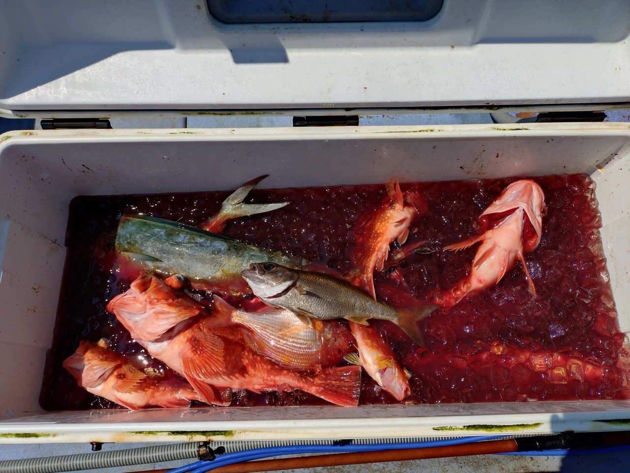 今日はイワシ泳がせに出船しました!朝のうち当たりがポツポツあってオニカサゴ1.8kg、カンコ、ムツ、が釣れて強い当たりもあったけどラインブレイク…でした。途中から潮が止まり当たり少なく早上がりしました。
