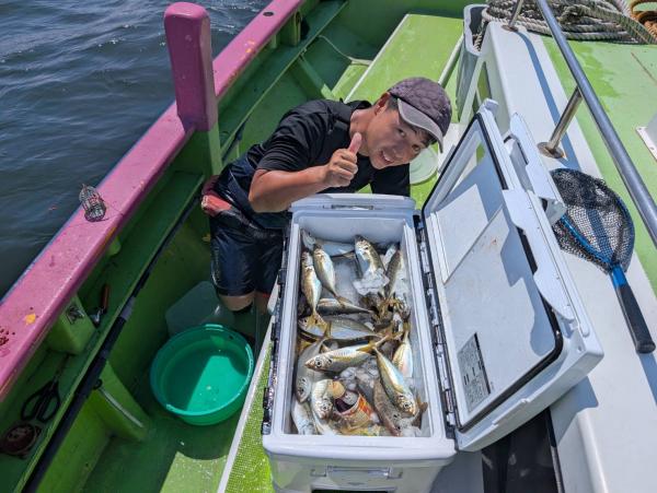 【ショートタチウオ船】 当初は台風の直撃で中止の予定でしたが 進路がずれて凪予報に変わったので出船しました! ジャンボ船三隻に別れてゆったりの出船でした! 台風後の入れ食いでした! 場所移動も無くて 潮も緩くて タチウオのサイズも良く 最高な日でしたね! テンヤも天秤もバリバリ入れ食いでした! 竿頭45本・二番手40本が2名様・三番手36本でした! サイズも120センチ 122センチ 125センチ 133センチが釣れました! 明日のタチウオ船は4隻体制でお待ちしてます! 貴光船長 【ショートタチウオ二隻目】 本日は、タチウオ3隻にて出船できました。 台風の影響も無く 大津沖で広範囲に反応確認でき 一投目よりアタリ良く 中盤からは巨大反応に乗りっぱなしで 移動少なく帰りまで楽しめました。 最大128センチに124・123センチも浮上し トップ天秤で77本・二番手天秤で63本 三番手62本の入れ食い状態でした。 毎日暑いので暑さ対策 飲み物は必ず多めに持ってきてください。 たかし船長 【ショートタチウオ船三隻目】 津波も去り、台風も明けて! 天気良く、凪良く!! タチウオも調子良く!! 絶好調な雰囲気! 朝1でお土産になりまして 後は、なるべくデカいの狙いで!! 今日の最大は 天秤レンタルのお客様が130センチゲット!! レンタルで!?天秤で!? って感じでかなり夢あります!! テンヤでは129センチに127センチも! 120Upもそこそこ混じって楽しめました。 小学生レンタルアングラーも 天秤でデカいのゲット! お見事! 竿頭天秤25匹 二番手22匹テンヤ、三番手20匹テンヤ の結果でした。 頑張って頂きありがとうございました。 祐希船長 【ショートアジ船】 大津沖〜観音崎沖でやり ころっとした中アジ主体! 朝はデカアジも混じり ポツポツ皆さん見れて楽しめました。 竿頭73匹、2番手66匹、3番手63匹の結果で フルレンタルのお客様も 35匹と最後まで頑張って頂きました。 ありがとう御座いました。 また皆さんで遊びに来て下さい。 明日は配船の為ショートアジ船は休船です。 次回お付き合い、ご予約お待ちしてます。 勝司船長