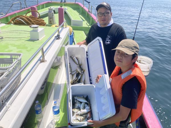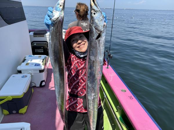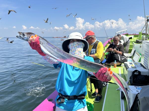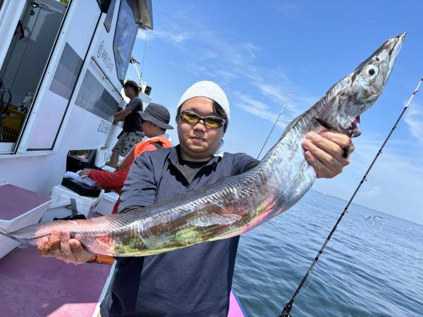 【ショートアジ船】 観音崎沖でやり 中アジ主体でダブル〜トリプルと喰い良く 皆さん楽しめました。 竿頭117匹、2番手76匹、3番手60匹の結果で フルレンタルのお客様も 23〜38匹とお土産十分キープ出来ました。 また皆さんで遊びに来て下さい。 明日もお付き合いご予約お待ちしてます 勝司船長 【ショートタチウオ船】 ジャンボ船三隻に別れての出撃でした! 朝一から走水沖には、広範囲に反応は有りましたが タチウオの活性はイマイチで 終日ポツーンポツーンと釣れる程度で 難易度も高めでした。 反応だけは多数有りますので タチウオの機嫌が良くなれば まだまだ期待は出来ると思います! 竿頭16本・二番手14本・三番手13本でした。 明日のタチウオ船も三隻体制でお待ちしてます! 貴光船長 【ショートタチウオ2隻目】 本日も、タチウオ3隻にて出船できました。 朝一、走水沖から観音崎沖にて反応を確認でき 開始すぐ型は見れましたが 中々棚が揃わず苦戦しました 段々と揃う様になってきてから ポツポツと見れ始め 初挑戦者の方もゲットできました。 最大は128センチに125センチもゲットでき トップ天秤で21本 二番手タチウオ釣り初挑戦の方が17本でした。 毎日暑いので暑さ対策 飲み物は必ず多めに持ってきてください。 たかし船長 【ショートタチウオ船三隻目】 今日もタチウオ釣りへ!! 昨日と変わらず、 数は難しめでしたが 型は抜群で!! 最大133センチ!130センチも! メーターオーバーから、120センチ代多数! 天秤でも120センチ超え。 天秤レンタルのお客様も含め 全員大きめタチウオゲットで、 お土産バッチリ! 竿頭テンヤで19匹、 二番手テンヤ17匹 三番手もテンヤ16匹の結果でした。 頑張って頂きありがとうございました。 祐希船長