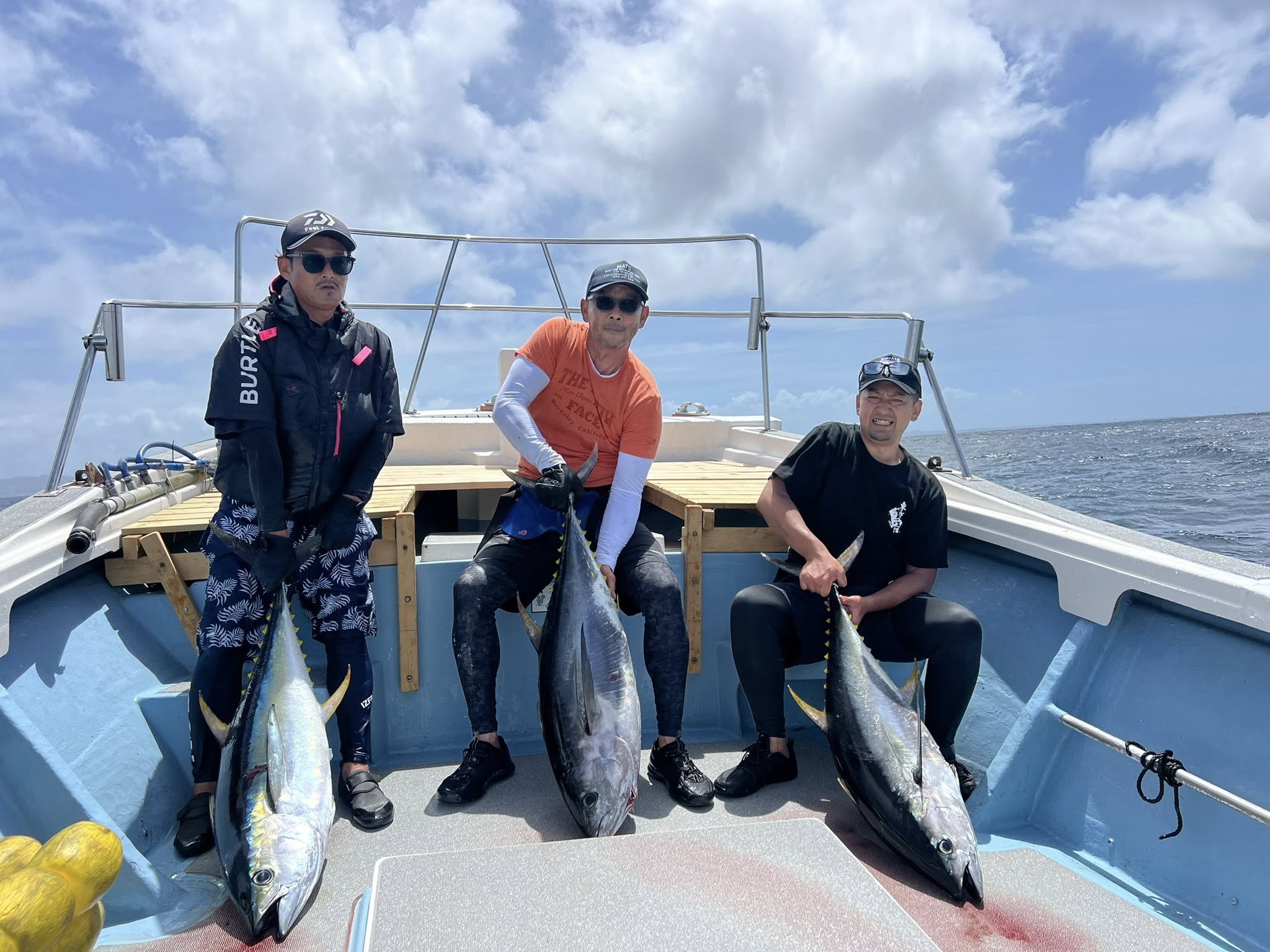7月17日(木)キハダキャスティング仕立て行ってきました。ずっと沈まないハミ❗️マジ凄かった‼️ 4人全員ヒットで1本はラインブレイクで3本ゲットでした😊 本日もご乗船頂きまして誠にありがとうございました🙇 7月からはご予約無い日にはタコ壷漁となります!タコ壷漁予定の日でもご予約頂けましたら出船致しますので仕立て&乗り合い募集や釣り物の相談、料金などお気軽にお問い合わせくださいね😊