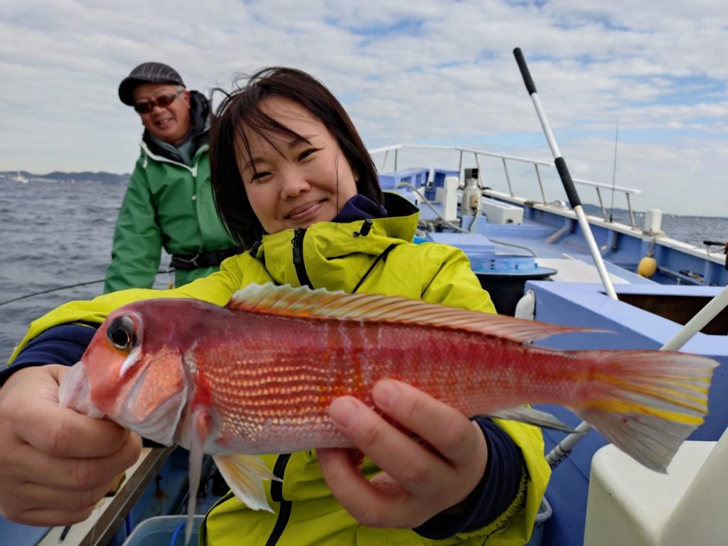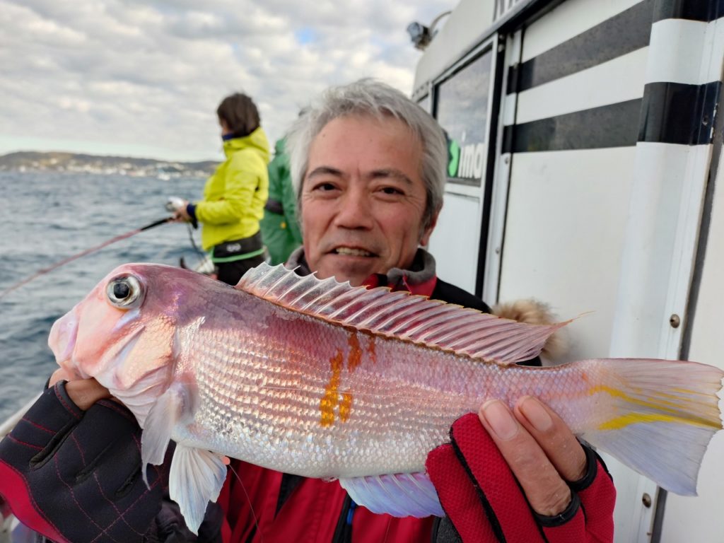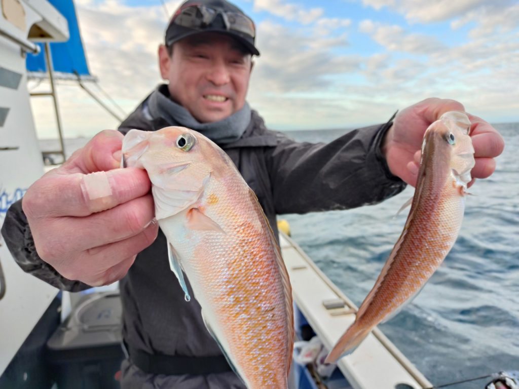 朝一シロアマダイ狙いですぐ釣れて餌取りが悪く移動しながら拾い釣りで最大36cm0~2匹。イトヨリもたまに上がり40cm交じり0~6匹。深場に移動しながらアマダイ狙いで良い流しもあってほとんどの方に釣れて0~3匹。オニカサゴ、ホウボウ交じり。