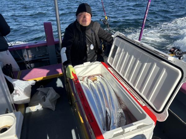 【ショートタチウオ船】 本日はジャンボ船二隻で出撃しました! 朝一から走水沖に巨大反応有りました! 納竿まで移動なして終日食い活発でした! 竿頭47本テンヤ 二番手43本天秤 三番手40本テンヤ 皆さんクーラー満タンで12時半に納竿しました! 明日は三隻体制でお待ちしてます! 貴光船長 【ショートタチウオ2隻目】 本日も、タチウオ3隻にて出船できました。 今日も朝からアタリ活発で テンヤ・天秤共に帰りまでアタリ途切れず楽しめました。 最大133センチに トップ35本・二番手30本が11人で 満足されて早めにしまわれた方が ありがたい事に多かったです! たかし船長 【ショートアジ船2隻目】 今日は久しぶりのアジ釣りへ!! 一日難しめでしたが 最後の最後に当たりよく。 帰るの勿体無いくらいで タイムアップとなりました。 釣れてるアジは型良く! 美味しそうなアジばかり。 仲間船に助けられ なんとかお土産になりました。 竿頭41匹 二番手21匹、 三番手20匹の結果でした。 頑張って頂きありがとうございました。 外道にヒラメ 祐希船長 【ショートアジ船】 本日は2隻で出船出来ました。 ありがとう御座いました。 走水沖でやり、良型の中アジ主体で 派手な出方は無いけど ポツン〜ポツンと皆さん見れて楽しめました。 竿頭30匹、2番手29匹、3番手25匹の結果で フルレンタルのお客様も10〜20匹と 皆さん最後まで頑張って頂き 型が良かったので助かりました。 また皆さんで遊びに来て下さい。 明日もお付き合い宜しくお願いします。 勝司船長