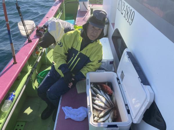 【ショートアジ船】 久里浜沖でやり 中アジ主体でポツポツ皆さん見れて楽しめ クーラー重くなりました。 竿頭85匹、2番手71匹、3番手70匹が2名様の結果で フルレンタルのお客様も24〜58匹と お土産以上の結果でした。 今日は慣れたお客様が殆どだったので数が伸びました。 また皆さんで遊びに来て下さい。 明日もお付き合い宜しくお願いします. 勝司船長 【ショートタチウオ2隻目】 本日は、タチウオ2隻にて出船できました。 朝一、走水沖からスタートし 反応が出てても 中々アタリを出すのが難しい感じでしたが 次第にポツポツとアタリだし 上手く冬タチ攻略できた方は 連チャンで釣れたりしていました。 最大122センチに トップ天秤で32本・二番手25本・三番手24本で 平均サイズ良く 皆様お土産ゲットできました。 たかし船長 【ショートタチウオ船】 今日も2隻でタチウオ釣りへ。 観音崎沖で一日 反応はバッチリでも バリバリは無く ポツリ、ポツリ見れました。 頑張って頂きありがとうございました。 竿頭20匹が3名様 二番手19匹、三番手18匹の結果でした。 祐希船長