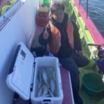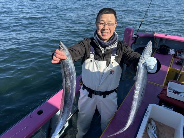 【ショートアジ船】 本日も観音崎沖でやり 潮が速く、反応当て当ての流し釣りで ポツン〜ポツンと 型は良型の中アジで 竿頭22匹が2名様、2番手20匹、3番手19匹の結果でした。 数は伸びませんが 美味しい良型の中アジ主体でした。 皆さん最後まで頑張って頂きありがとう御座いました。 明日もお付き合い宜しくお願いします。 勝司船長 【ショートタチウオ船】 本日は、タチウオ船にて出船できました。 朝一、中々反応が見つからず やっと細切れ反応を確認し 一投目から型は出ましたが、後が無く また入れ替えてみたり 空振りだったり 連チャンで釣れたり 反応はモリモリでも アタリがなかったりと難しい日になりました。 釣れれば型は良く 最大118センチに トップ天秤で8本・二番手6本でした。 たかし船長