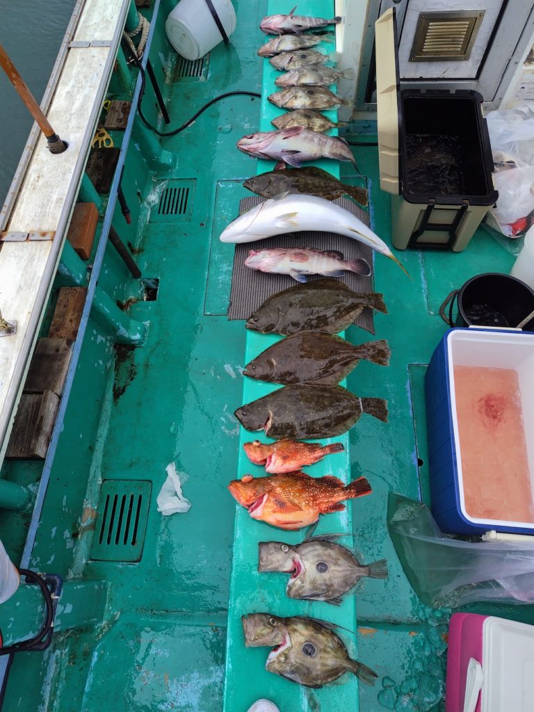 ベイトの反応有ればアタリ多いポイントも有りましたが、反応少なく潮流れず苦戦でしたが楽しめました。ヒラメ、マハタ、ブリ、マトウダイ