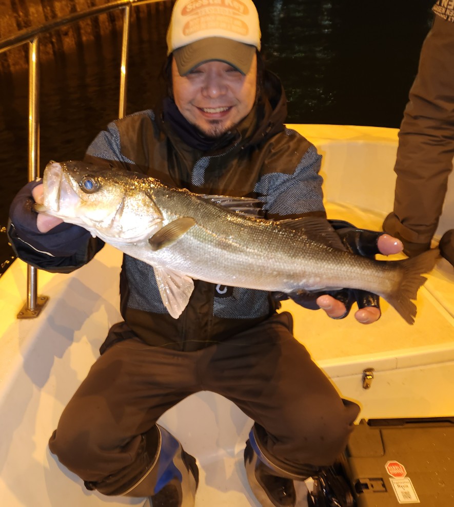 シ一バス・ルア一フィッシングで出船 各ポイントをランガン、ナイスキャスト決めるとヒットする楽しい展開。 手練れのお客様方、鮮やかにポンポンとキャストを決めて、鮮やかにヒットさせる技に見惚れてしまいました。 春の夜のシ一バスゲーム最高に楽しめます。