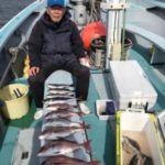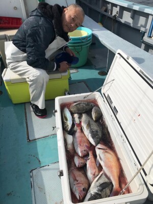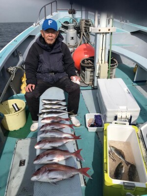 真鯛五目船真鯛全員ゲット、トップ6枚黒鯛、イサキ、鯵交じる。シャクリ五目船シマアジ、黒鯛、鯵、イサキ、イナダ、ウマズラハギ交じる。みなさん今日はどうもありがとうございました。