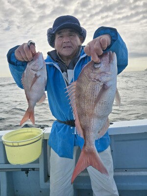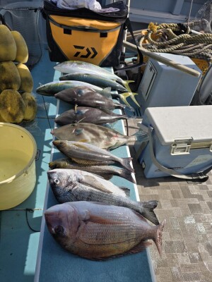 真鯛全員ゲットその他クロダイ、イナダ、アジ、イサキ、ウマヅラなど釣れました