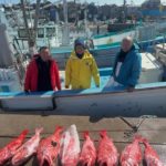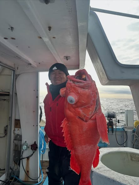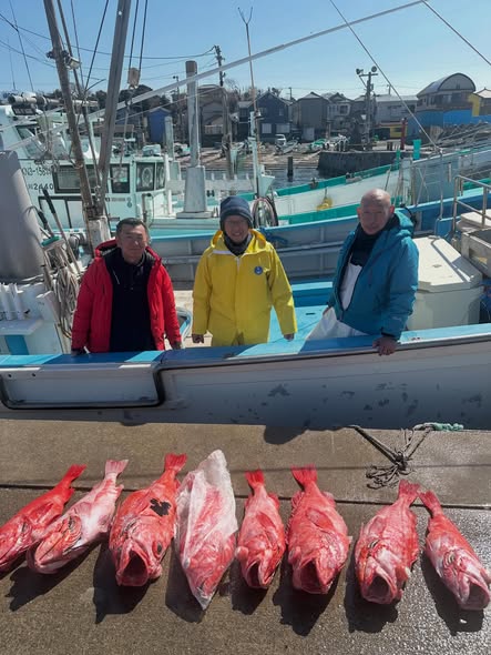 今日は超深海紅アコウ❗️朝イチにいい当たり❗️いましたー😊良型浮上ーー🔥幸先良いスタート!と思いきや2投3投当たりなし💦場所移動した4投目‼️全員に激しい当たり🤩期待の巻き上げ重量感MAX‼️先ずは1本浮上ーー🔥そして2人目も浮上ーー🔥まだいるよー!からのトリプル浮上ーー🔥🔥🔥最後の1人も浮上ーー浮上ーー🔥🔥のダブルゲット‼️最後の流しもいい当たりからの途中でオッパズレ💦外れるって事は紅だってねー😅と話しながら片付けてたら、ボッカーン‼️浮上ーーしました😍結局船中8本ゲット👍しかも貸し竿の初挑戦の方が5本‼️やり過ぎです😅 2号船はアブラ坊主狙い❗️初挑戦のお客様。 こちらもキマシターー🔥🔥24キロ‼️21キロ‼️2本ゲットーー😍 超深海❗️チョー絶好調です😍 初めての方も先ずは手ぶらセットで挑戦してみてください😊初挑戦のゲット率!かなり高いです😆