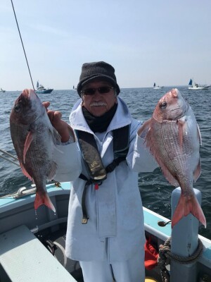 真鯛全員ゲット、トップ3枚黒鯛、鯵、鯖交じる。みなさん今日はどうもありがとうございました。