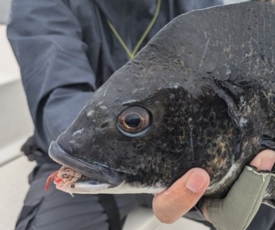ポッパーフライへも好反応、ワンキャストで二度三度と追い食いシーンも。50cmオーバーの年無しも混じってクロダイフィッシングを満喫していただきました!