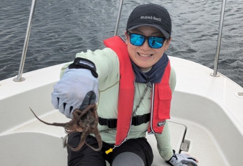 シーバスルアーフィッシングで出船。 深夜のベイエリアをランガン、ミノーで隈無くサーチ。 強風ラフウォーターのなか、丁寧なファイトでグッドサイズをキャッチ! お見事でした!! (Capt.いとう) エギタコ釣りで出船。 荒れ模様のベイエリア、風裏をじっくりコツコツとボトム探索。誘いのリズムがハマった感じでグッドサイズを短期間でサクサクキャッチ!お見事でした!! (Capt.いとう)