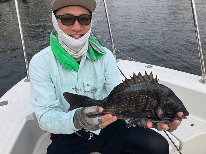 クロダイフライフィッシングで出船。 前半はイガイパターンで各ポイントをチェック。 ちらちらとクロダイが見えていい感じ。両ゲストともに良型をキャッチ! 後半はポッパーで攻めて水面炸裂バイト!惜しくもフックアウトしてしまいましたが、夏のトップゲームを満喫!お見事でした。 (captますだ)