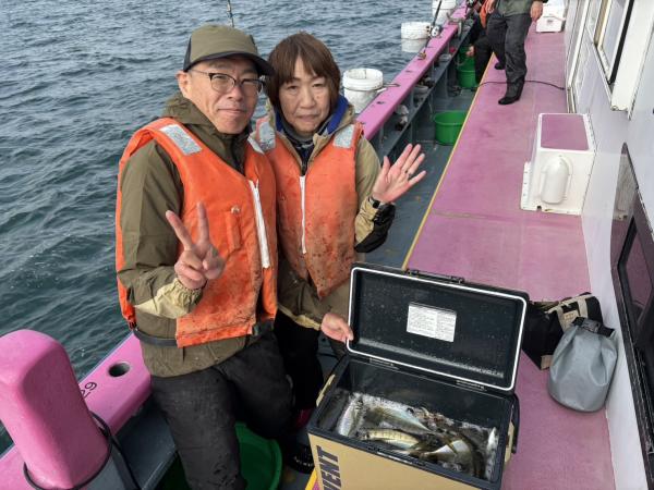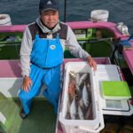 【ショートタチウオ船】 本日は軽く二隻に別れての出撃でした! 今日は終日走水沖でしたが タチウオの活性はイマイチでしたね。 ポツーンポツーンと型を見る感じでした。 最大は124センチが釣れました! 竿頭9本が3名様・二番手8本・三番手7本でした。 貴光船長 【ショートタチウオ船二隻目】 今日はタチウオ釣りへ!! 一日反応も多くは無く。 難しい雰囲気ですが。 なんとか地味に拾えて、 半分はレンタルのお客様でしたが 皆様タチウオゲット。 最大133センチに 尾切れの大きいのもでたり。 どうにか、こうにか、一日楽しめました。 竿頭テンヤで12匹が二名様。 二番手テンヤで8匹。 三番手天秤6匹の結果でした。 頑張っていただきありがとうございました。 祐希船長 【ショートアジ船】 今日は2隻で出船出来ました。 ありがとう御座いました。 良型の中アジ主体で ポツポツ皆さん見れて楽しめました。 竿頭37匹、2番手35匹、3番手34匹の結果で フルレンタルお客様も 10〜30匹と潮の速い中 最後まで頑張って頂きました。 また皆さんで遊びに来て下さい。 明日もお付き合い宜しくお願いします。 勝司船長 【ショートアジ2隻目】 本日は、アジ船2隻にて出船できました。 朝から潮流れはやく 棚取りに大苦戦でしたが 釣れれば中型から良型混じりで チャンスタイムには ダブル・トリプルで釣れる場面もありました! トップ27匹・二番手23匹でした。 たかし船長