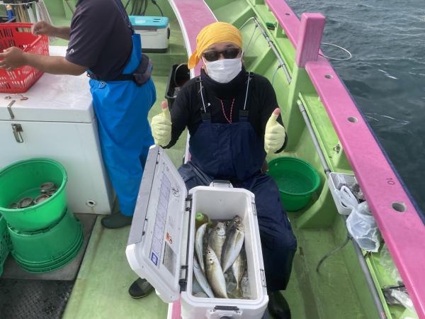 【ショートタチウオ船】 本日も、タチウオ船にて出船できました。 朝一、港前より開始し 一投目より型が見れ 間が長かったり 油断してると、いきなりトリプルヒットしてみたりで 中盤からは、走水沖にて 帰りまで反応あり楽しめました。 最大110センチに トップテンヤで22本・二番手天秤で19本で 10本以上の方が多くお土産ゲットできました。 たかし船長 【ショートアジ船】 今日は2隻で出船出来ました。 ありがとう御座いました。 観音崎沖でやり 良型の中アジ〜デカアジ主体でしたが 喰いが良くならず 移動〜移動の拾い釣りでした。 竿頭40匹、2番手33匹、3番手23匹の結果で フルレンタルのお客様も 8〜17匹と型が良かったのでオカズにはなりました。 今日は渋い喰いですみませんでした。 またリベンジして下さい。 最後まで頑張って頂きありがとう御座いました。 勝司船長 【ショートアジ船二隻目】 今日はアジ釣りへ!! 機嫌悪いのか、 朝から空振り連発で、 10時まで顔見れず。。。 焦りましたが、中盤から ポツポツ見れまして、 半分レンタルのお客様でしたが なんとかお土産には。 上手な方1人ダントツで 51匹!! お見事!! 二番手、三番手は20前後、、 とお土産程度でしたが顔見れて良かったです。 頑張って頂きありがとうございました。 祐希船長