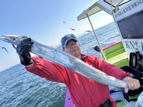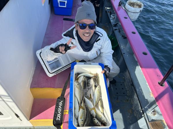 今日は2隻で出船出来ました。 ありがとう御座いました。 大津沖〜観音崎沖でやり 前半は、やや小ぶりが多め 中アジ混じりで、ポツポツ皆さん見れて 中盤から良型の中アジ〜デカアジ混じりで ポツン〜ポツンと皆さん見れて楽しめました。 最大43センチで 竿頭92匹、2番手60匹、3番手58匹の結果で 平均40匹前後とお土産十分キープ出来ました。 最後まで皆さん頑張って頂き ありがとう御座いました。 また皆さんで遊びに来て下さい。 明日も2隻で出船です! お付き合い宜しくお願いします。 勝司船長 本日は、アジ2隻にて出船できました。 朝一、猿島沖からスタートし 開始一投目より型見れ 中型主体にダブルなんかもあり 中盤から観音崎沖にて 派手さはなかったですが デカアジ混じりで帰りまで楽しめました。 最大43センチに トップ53匹・二番手50匹で30匹の方が多くいました。 スペシャルゲストにマダイ・クロダイ・マサバでした。 たかし船長 今日もタチウオへ 昨日の今日で期待感ありましたが 今日は厳しかったです。 なので、明日は釣れるかも? なんの根拠もありませんが。 笑 尻尾切れの大きめは釣れまして 初挑戦レンタルのお客様も大きめゲット!! しかし、 竿頭5匹!! 4匹、3匹、と厳しい一日でした。 頑張って頂きありがとうございました。 祐希船長