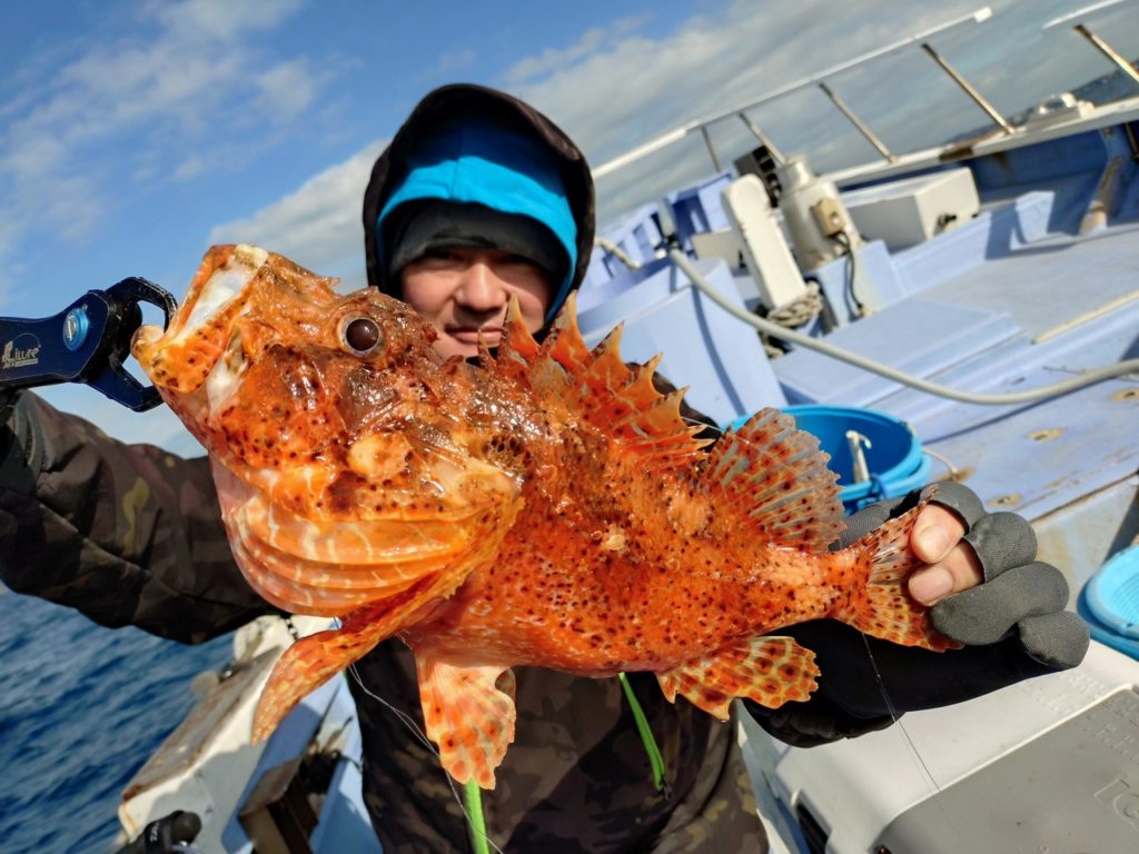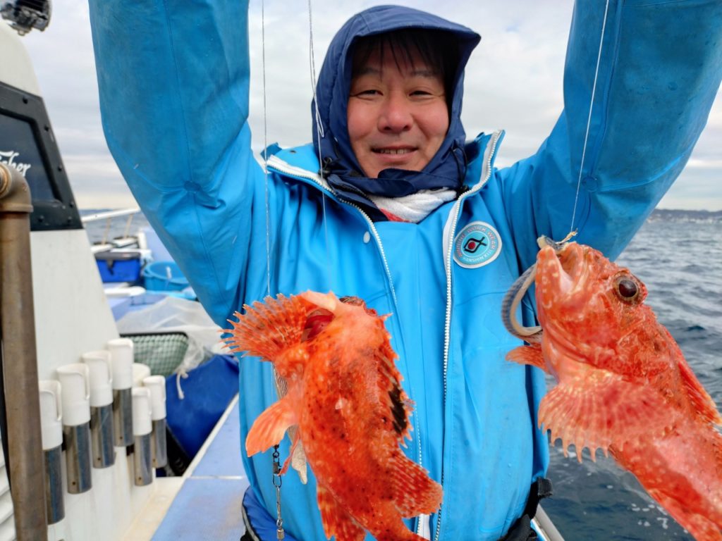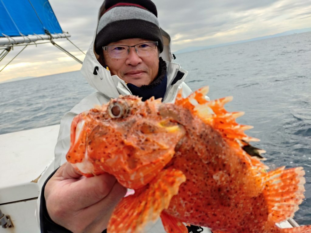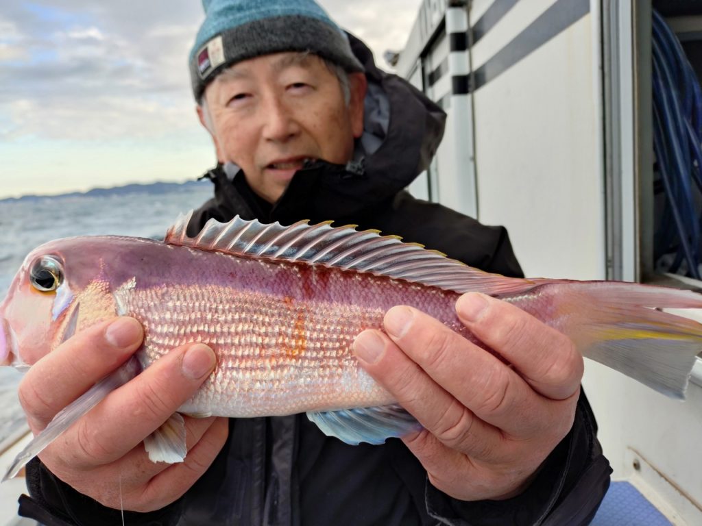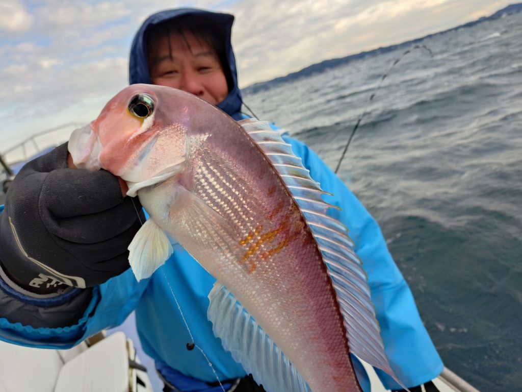 今日はアマダイ~オニカサゴのリレーに出船しました!朝一シロアマダイ狙いで小さいの顔見れてアマダイ狙い良い人2匹。赤白交じりで0~3匹!オニカサゴに変更してすぐ釣れて流しなおすたび何とか釣れて良型交じり1~3匹でした! 1月ガラガラに空きあります! 平日近場3名様より出船中です。 よろしくお願いいたします!