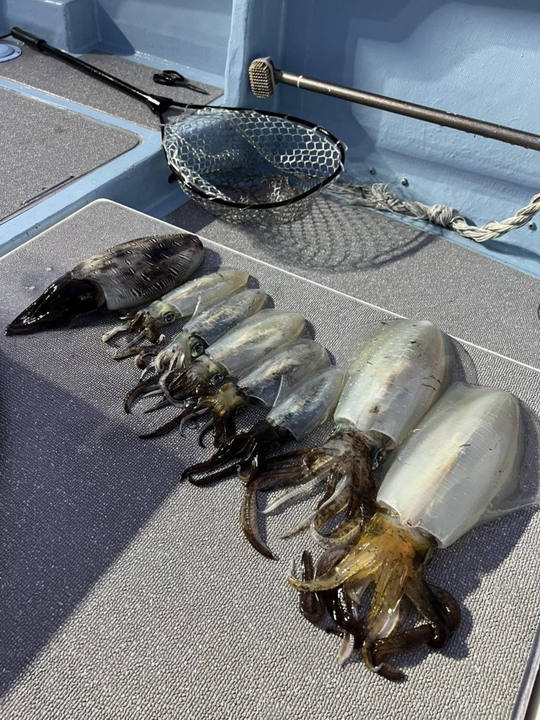 12月13日(土)本日はテンヤ白アマダイ仕立てでした。イトヨリはポツポツ釣れましたが本命は船中3匹でした…他アオハタ 本日は寒い中ご乗船頂きまして誠に有難うございました🙇 早めに片付け終わって時化後で気になってたから1人TR行って来ました😅2時間だけでしたが正月の食材を無事ゲット出来ました🦑👍