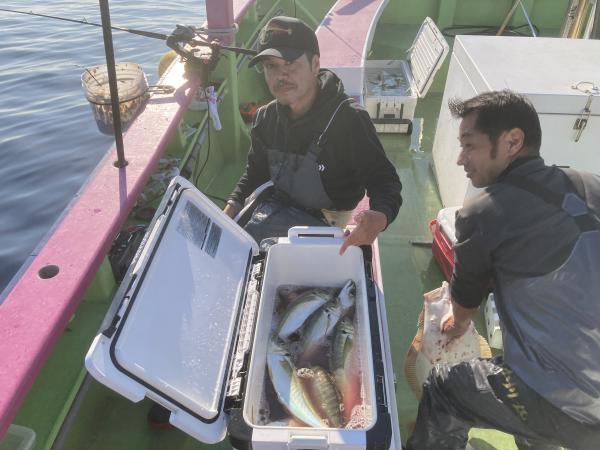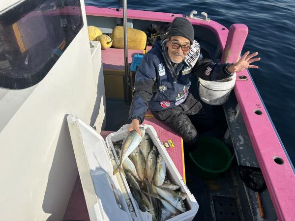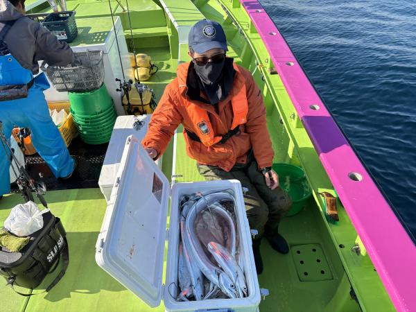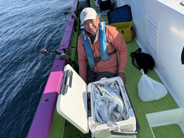 【ショートタチウオ船】 今日もタチウオ釣りへ!! 今日は朝から絶好調!! 安定してくれる事を祈ります! ほぼ皆様20匹オーバーで 竿頭天秤35匹 二番手テンヤ34匹 三番手テンヤ32匹 四番手天秤30匹の結果で 平均にバッチリ! 型も良く。 クーラー重たくなりました。 頑張って頂きありがとうございました。 祐希船長 【ショートアジ船】 本日も2隻で出船出来ました。 ありがとう御座いました。 観音崎沖でやり 良型のデカアジ主体で 派手な出方は無いものの 釣れればデカアジと型は良かったです! 最大47センチで 竿頭25匹、2番手24匹が2名様、3番手23匹の結果でした。 ハリス切れや針が伸びたりと バラシが多かったけど 皆さん最後まで頑張って頂き楽しめました! また皆さんで遊びに来て下さい。 明日もお付き合い宜しくお願いします。 勝司船長 【ショートアジ2隻目】 本日は、アジ2隻にて出船できました。 一箇所目より大アジ主体に型が見れましたが 回ってくると釣れる感じで 間が長く、移動先でもアタリがあっても 大アジでハリス切れ 針伸び多数で 中々船に入らない場面が目立ちました。 ラストに他船から情報頂き 帰りまでポツポツと釣れ 時間まで楽しめました。 トップ28匹・二番手24匹で 皆様型良くお土産バッチリでした! たかし船長