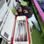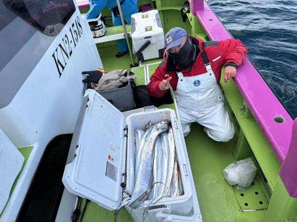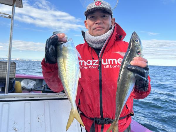 【ショートタチウオ船】 今日もタチウオ釣りへ!! 昨日と同じ様な雰囲気で ポツポツ釣れました。 竿頭テンヤ31匹 二番手テンヤ26匹 三番手天秤24匹、 同じくルアーも24匹 皆様お土産以上となりました。 頑張って頂きありがとうございました。 祐希船長 【ショートアジ船】 本日も2隻で出船出来ました。ありがとう御座いました。観音崎沖でやり良型のデカアジ主体で派手な出方は無いけど慣れた方はポツポツと見れて最大46センチで竿頭42匹、2番手38匹、3番手36匹の結果でフルレンタルのお客様も15〜20匹と最後まで頑張って頂き楽しめました。ハリス切れ、針が伸びたりとデカアジ多くバラシも多数有りましたね。また皆さんで遊びに来て下さい。明日もお付き合い宜しくお願いします勝司船長 【ショートアジ2隻目】 本日も、アジ2隻にて出船できました。 一投目より大アジ主体に、型が見れましたが 長続きせず 潮変わりからポツポツと見れ 昨日同様に釣れれば型良かったですが 難しかったですね! 最大47センチに トップ16匹でした。 厳しい中、諦めず頑張って頂き ありがとうございました。 たかし船長