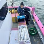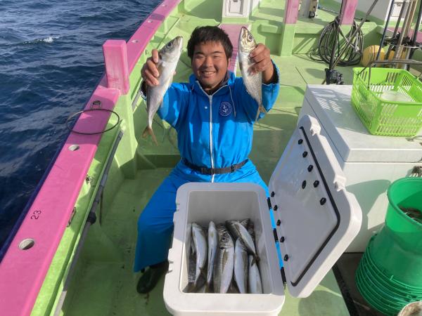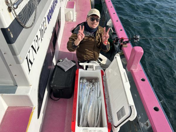 【ショートタチウオ船】 今日もタチウオ釣りへ! 変わらず反応バッチリで! 当たりは多く ダントツで釣れる方は居ませんでしたが 平均にお土産バッチリで 一日楽しめました! 竿頭はテンヤで24匹 二番手天秤で19匹 三番手天秤で17匹 頑張って頂きありがとうございました。 祐希船長 【ショートタチウオ2隻目】 本日は、タチウオ2隻にて出船できました。 観音崎沖からスタートし 開始一投目より型が見れ テンヤ・天秤共にアタリ良く 帰りまでアタリ途切れず テンヤの方は40匹のイワシが11時で無くなった方も! トップ天秤で38本・二番手テンヤ・天秤共に33本が2人 三番手30本で皆様クーラー重たくなりました! たかし船長 【ショートアジ船】 観音崎沖でやり 特大アジ主体で 派手な出方は無いものの、釣れればデカアジ! 最大47センチで 竿頭38匹、2番手30匹、3番手29匹の結果で フルレンタルのお客様も 9匹でしたが全て特大アジと 皆さんお土産になりました。 ハリス切れや針が伸びたりとバラシ多数でした! 最後まで皆さん頑張って頂き ありがとう御座いました。 明日は2隻で出船です! お付き合い宜しくお願いします。 勝司船長