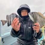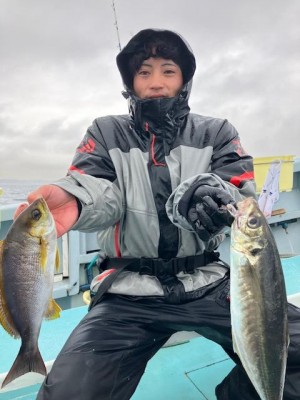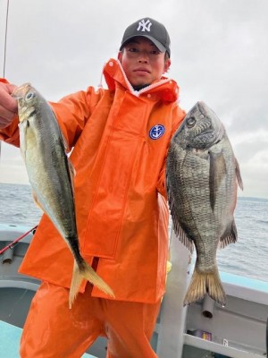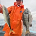 本日はシャクリ五目で出船 石鯛 イナダ 大鯵 黒鯛 鯛 イサキ カイワリ交じり釣れ良かったです。雨の中頑張ってくれて有難う御座います。又宜しくお願いします。