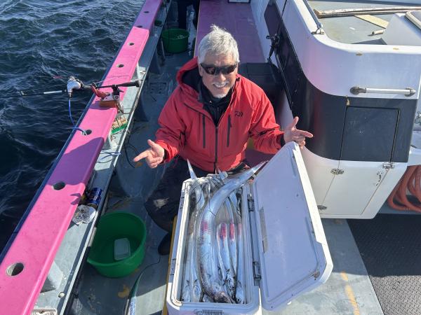 【ショートタチウオ船】 本日もタチウオ船には 大勢のお客様に遊びに来て頂き感謝です! ジャンボ船三隻に別れての出撃でした! 朝一から納竿まで 観音崎沖には広範囲に反応が有りまして 終日食い活発でした! 天秤道具の方がアタリは良いと思います! 竿頭31本 二番手30本 三番手26本で皆さんクーラー賑わいました! 火曜日〜水曜日は連休となります。 次回出船は木曜日です! 好調のタチウオ船は 常時二隻〜三隻体制でお待ちしてます! 貴光船長 【ショートタチウオ2隻目】 本日はタチウオ3隻にて出船できました。 観音崎沖にて反応確認でき 潮が早かったですが 一投目よりポツポツと釣れ タチウオ釣り初挑戦の方も連チャンで釣れたり 本日も皆様バッチリお土産ゲットできました。 トップ39本・二番手37本・三番手33本でした。 たかし船長 【ショートタチウオ船三隻目】 今日もタチウオ釣りへ! 変わらず反応はバッチリで すぐ顔見れました!! 竿頭天秤24匹 二番手テンヤ19匹! 三番手天秤15匹が3名様 レンタルのお客様も変わらないくらい 見れまして楽しめました。 頑張って頂きありがとうございました。 祐希船長 【ショートアジ船】 久里浜沖でやり 良型の中アジ~デカアジ混じりで 中盤からポツポツ皆さん見れて楽しめました。 竿頭女性アングラーで50匹、2番手46匹、3番手44匹の結果で フルレンタルのお客様も10~22匹と 海の悪い中最後まで皆さん頑張って頂きました。 ありがとう御座いました。 また皆さんで遊びに来て下さい。 次回は木曜日にお付き合い宜しくお願いします。 勝司船長