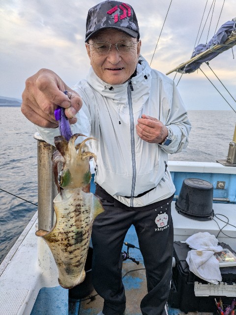 アオリイカ船中2杯、雨風強くなり早上がりになりました。