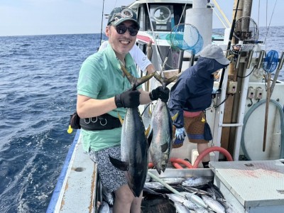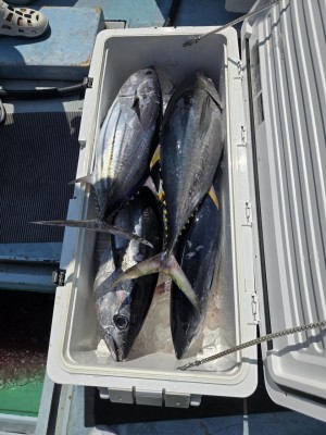 キハダの16キロ、カツオの2.5キロ、キメジの3キロ他にヒラソーダ。本日は乗船ありがとうございました...