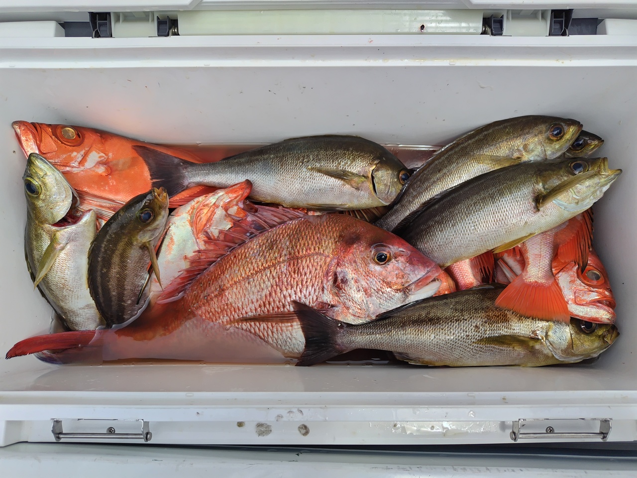 コマセ五目&アマダイのリレー 朝は良い反応見つかり、チカメキントキがポツポツ釣れク-ラ-満...