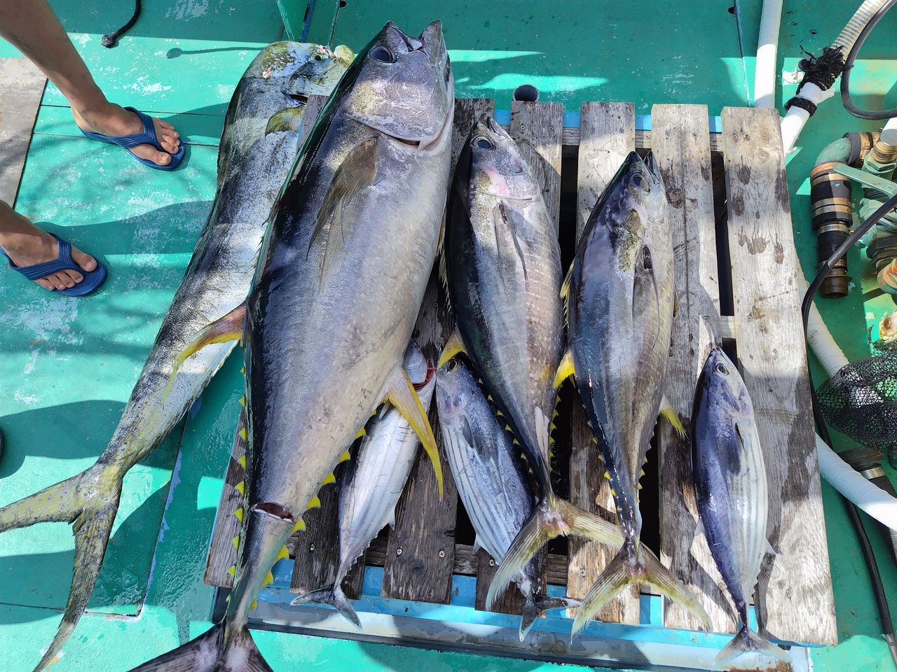 フカセマグロ 朝から反応多く周りで良く跳ね、流すたびアタリ有り、キハダマグロ全員ゲット。キメジ...