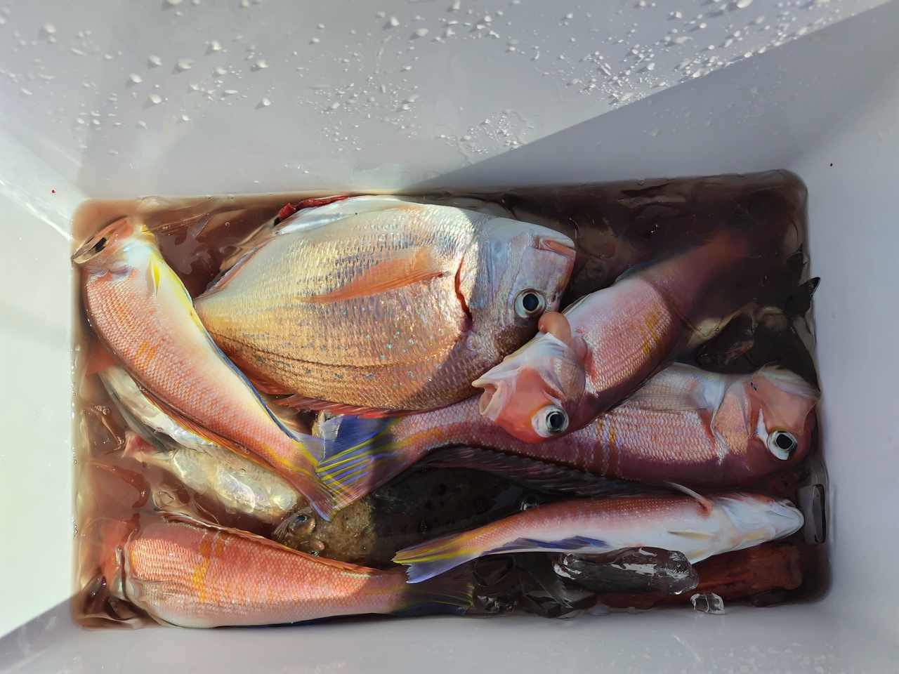 コマセ五目 朝は激アツ反応でアタリ良かったですが長く続かずマダイ船中14枚。スマ、メダイ、サバ...
